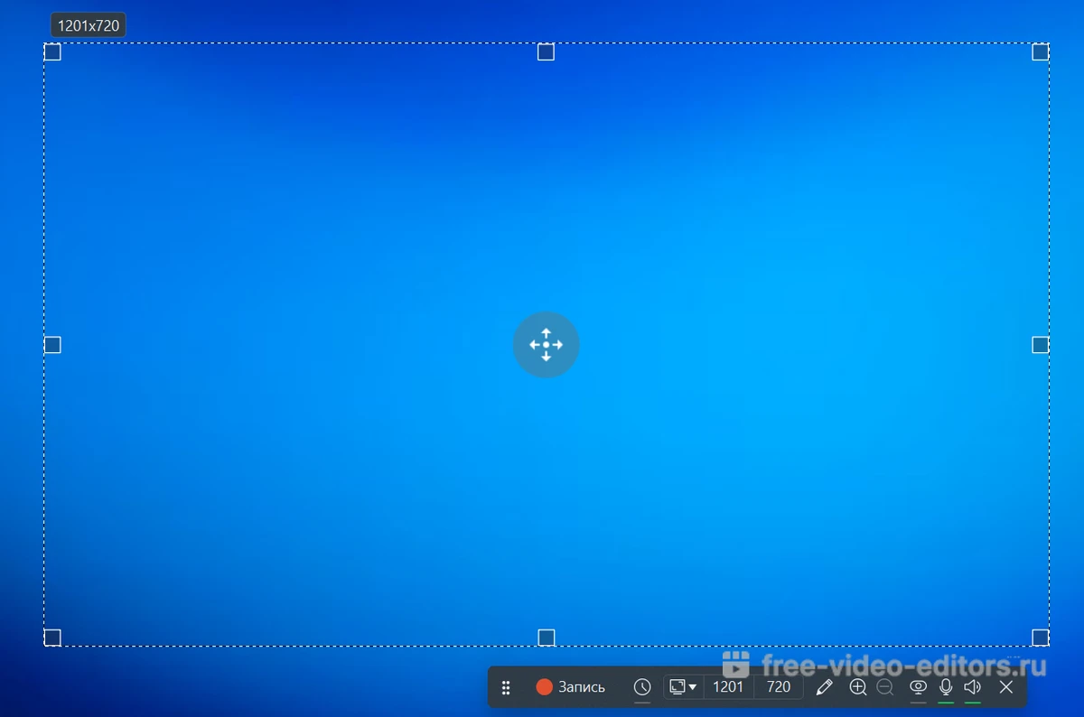 Можно записывать как все пространство монитора, так и выбрать небольшую часть экрана ноутбука или компьютера. Дополнительно есть опция «Автоопределение» и запись «Вокруг курсора». Также софт делает скрины и предлагает набор базовых инструментов для редактирования видео: